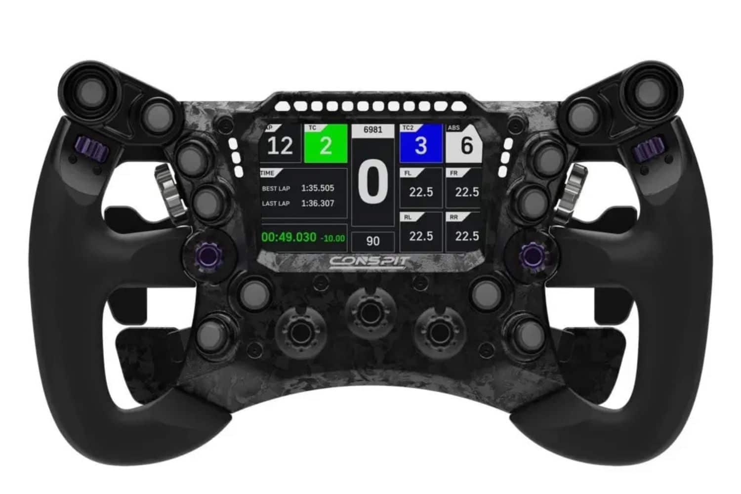 Jej katalog obejmuje głównie kierownice typu Formula i bardzo dobrze, bo dziś w nasze ręce trafiła 290 GP. Jest to prostokątna kierownica z włóknem węglowym, aluminium i dużym ekranem pośrodku. Nie jest to najlepsza kierownica Conspit, ale warto się jej przyjrzeć, ponieważ znajduje się w samym środku ich katalogu. Zainstalujmy ją w naszej konfiguracji i zobaczmy, co ma do zaoferowania w porównaniu z konkurencją.