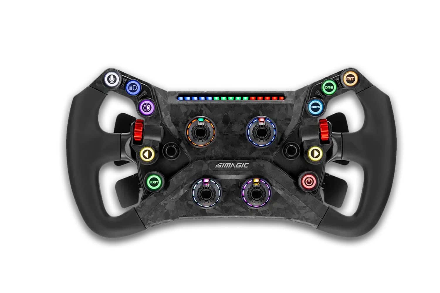 Wśród kierownic oferowanych przez Simagic mamy GT Neo, kierownicę GT i Formula, z naciskiem na pierwszą kategorię sportów motorowych. Kierownica ta oparta jest na strukturze ABS wzmocnionej kutym węglem i znajduje się w naszej konfiguracji do pełnego testu.